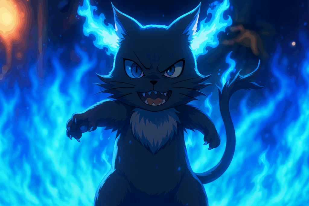 グリムの尻尾や耳の炎、猫にも似た容姿は、単一の動物では説明できない構造です。