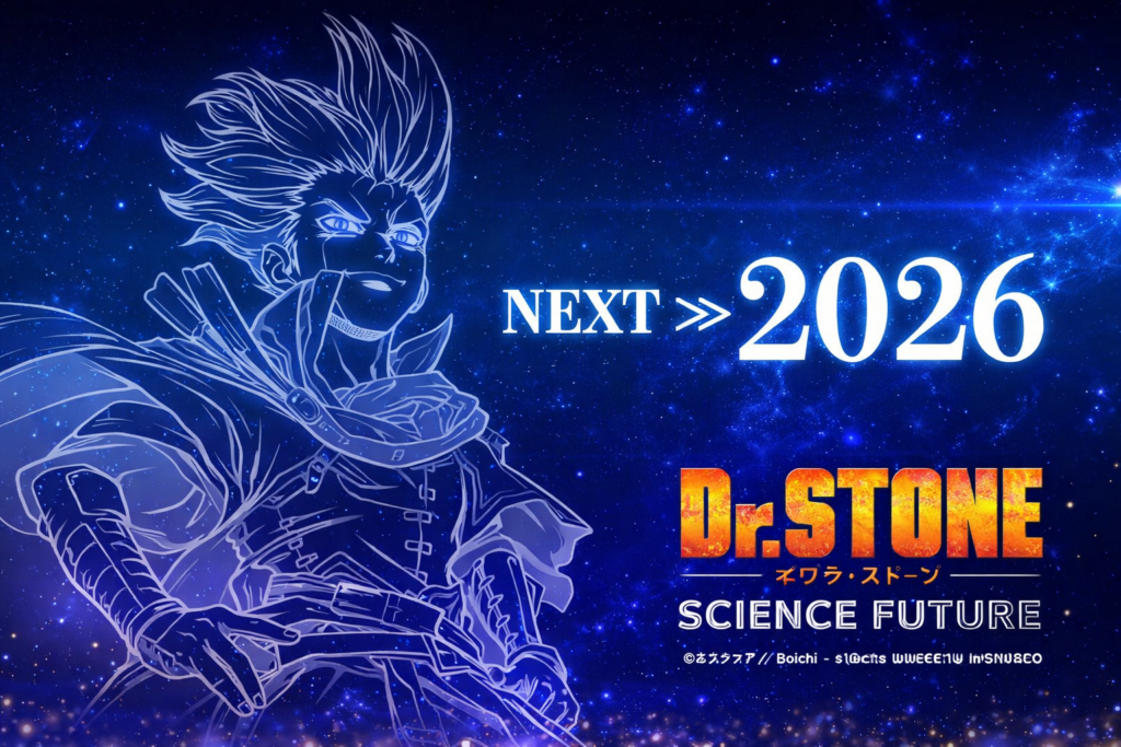 転スラ・リゼロと同じ2026年春クールで放送されるDr.STONEですが、「異世界転生に飽きた人にこそ刺さる」作品だと思います。魔法もチート転生もない、純粋に「科学と知恵と仲間の絆」で世界を変えていく爽快感はDr.STONEだけの個性。しかもこの第3クールでついに最終章を迎えるので、今から追いかけるには絶好のタイミングです!